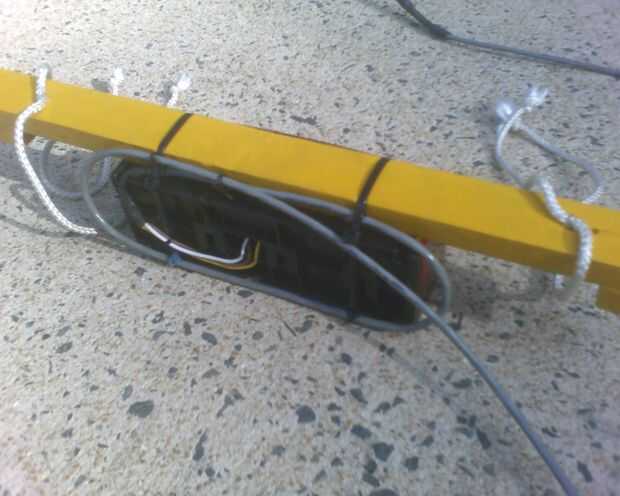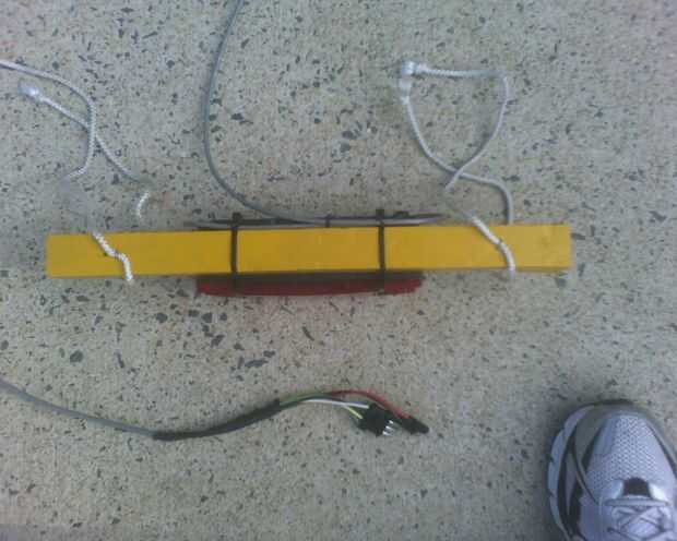 --Dos fuertes bridas (zip ties) alrededor de la luz y madera