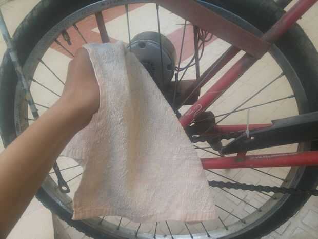 Limpiar primero los radios de la rueda para que la soldadura se fija muy bien al borde (siguiente paso)