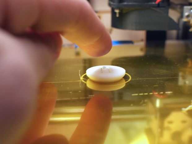 Su tiempo para imprimir algunos botones. En mi entorno tardó aproximadamente botón PR. 30 minutos. Por supuesto usted podría imprimir muchos al mismo tiempo, pero esto puede reducir la calidad de los objetos, dependiendo de qué impresora tienes. (Tengo un Ultimaker, que tiene el filamento plástico son empujado a través de un tubo y en la extrusora. Como cada "isla" se imprime, el extremo caliente viajará a través del espacio abierto y sangran un poco.)