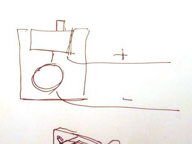 Saber dónde colocar la batería/Interruptor-carcasa. La coloqué en la parte inferior derecha en el forro de mi chaqueta. Corte los cables a la longitud correcta. Mira la imagen adjunta para una descripción esquemática de cómo conectar los cables. Este paso será necesario soldar dos cables, un + y un-, al interruptor. Antes de soldar, insertar los cables a través de la carcasa, como el interruptor se inserta en la carcasa.