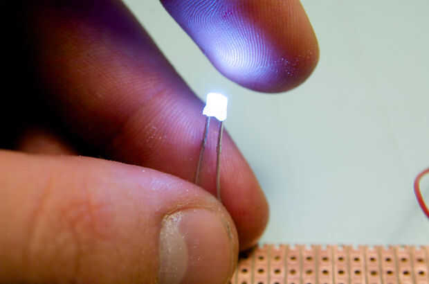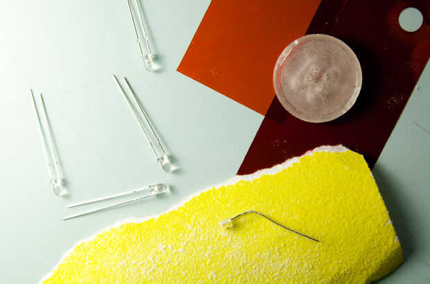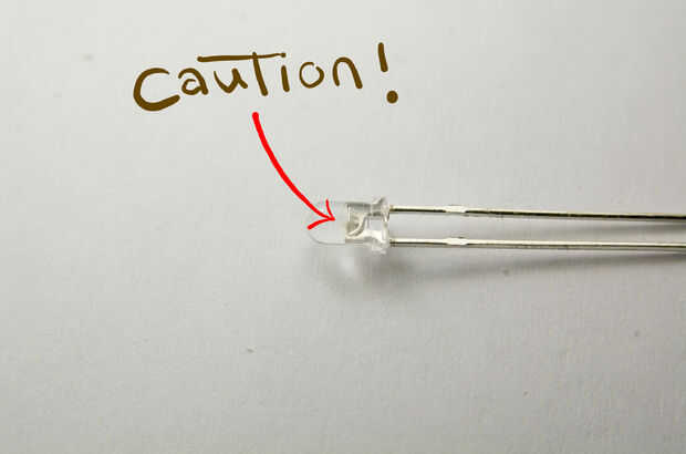 El estándar 3mm LED están equipadas con una lente de epoxy para dirigir la luz de una manera. Con un papel de lija, frote hacia abajo de la lente, por lo que te queda solamente el núcleo de metal.