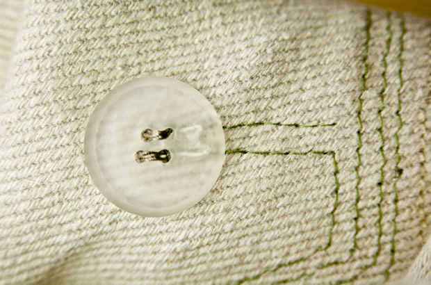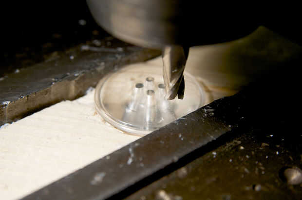 Cuidado! si usted mira de cerca, que se que hay un pequeño alambre por encima de la fuente de luz de metal, no se los frote esto lejos! En una tienda encontré algunos simples semitransparente botones, 14 para las luces y 2 para los pulsadores. Usando un powertool montado o mano, haga un pequeño agujero donde tiene más sentido colocar el LED. Mi agujero mide 6mm de diámetro, 2mm de profundidad. He puesto el agujero por debajo de los orificios de botón. Doblar las piernas en el LED por lo que están apuntando en la misma dirección que la luz, las piernas se ponen donde están los orificios de botón. Para que se vea mejor, cortar dos pequeñas ranuras del agujero LED a los ojales, uno para cada pierna. La razón de esto es que después coserá los botones de la chaqueta con hilo conductor. El hilo conductor se conecta con las piernas de LED led, + y - y hacerlos brillar!