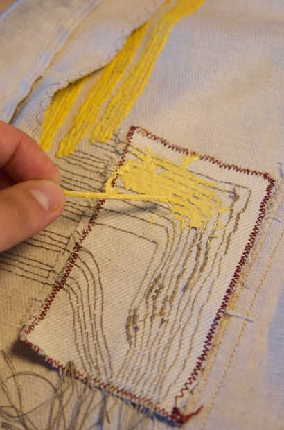 Para aislar el hilo conductor es recomendable. Esto ayuda a los hilos de rosca tocando unos de otros. Pintar todos los hilos con la pintura textil hinchados.