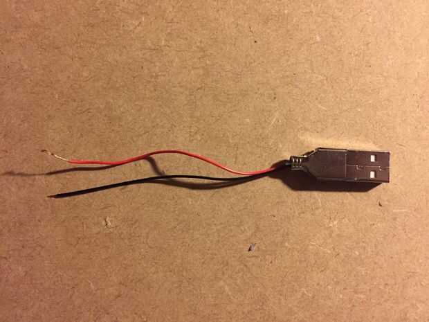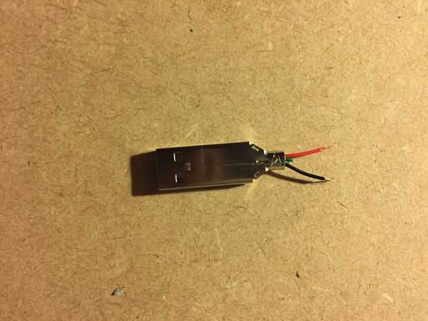 Funda de goma corto que protege el puerto USB dejando solo la parte metálica con cables eléctricos. dejar que los cables (negro y rojo) como se muestra en la imagen.