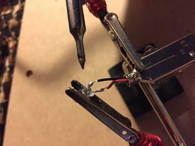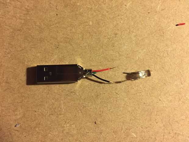 con el hierro conecta al puerto USB con LED en sus respectivas polaridades. Sugiero colocar una pequeña resistencia si tienes miedo de derretir accidentalmente el LED