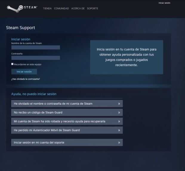 1.-lo primero tenemos hacer es acceder a la pagina de soporte de vapor y loguearnos con nuestro usuario y contraseña.