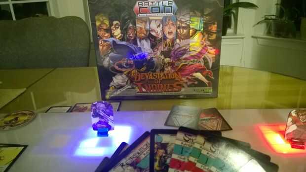 Este es un proyecto que hice como un final para una de mis clases este semestre. Es un tablero que se enciende cuando pones pedazos en él, y la luz es diferente dependiendo de qué color es en él. Este tablero está construido específicamente para un juego de mesa llamado BattleCON. BattleCON (principalmente) es un juego de cartas lucha de dos jugadores que es muy divertido. El juego se juega básicamente por armar una tarjeta de estilo único y una tarjeta genérica de base para hacer un ataque.