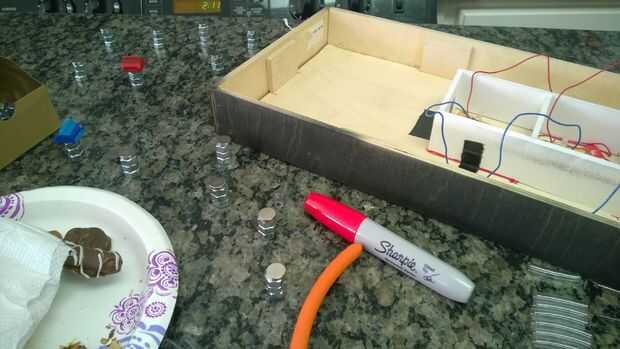 Ahora sería un buen momento para poner un imán dentro de cada soporte de plástico. La polaridad no importa tanto como su opuesto del color opuesto. Con cinta eléctrica para mantener el imán dentro del stand. Tenía cinta para que coincida con mis piezas para que no se ve notable. Estas piezas será muy útiles para ordenar los imanes entre los colores, así que también podría hacer que ahora también. Usé dos imanes para cada luz. Colocó en una pila de tres tuercas. Aquí está un Consejo rápido que me di cuenta, en caso de ya tener tus pilas de imán listas antes de que usted ha hecho el plástico soportes magnético: imanes con el mismo lado voluntad repelen, se adhieren imanes con lados opuestos uno al otro! sí, los lados de un imán son todavía magnéticos. ¿No es eso cool?