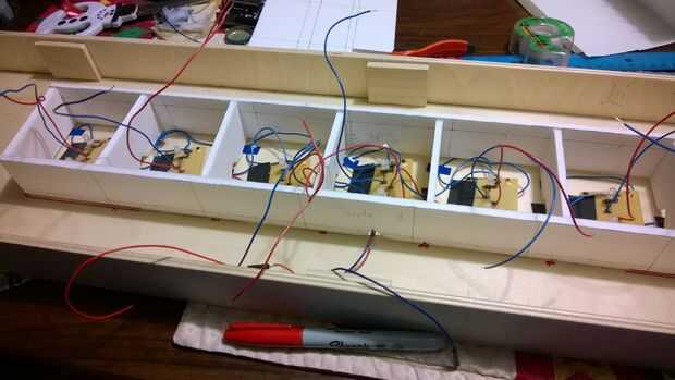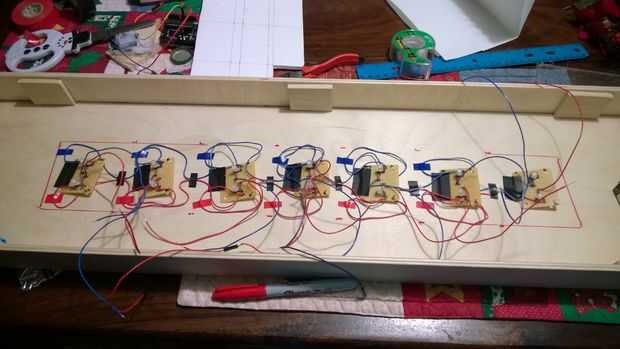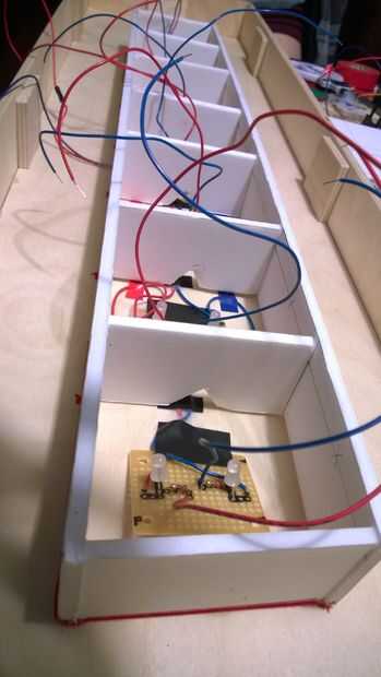 Centrada en el núcleo de espuma dentro de la caja y luego marcó su posición. Luego había grabado por el circuito y colocar el cartón pluma en la parte superior. Mientras que el circuito es grabado, el cartón pluma es superglued en. sí, definitivamente puede ver cómo lleno los alambres hacen todo. También sería agradable si usted podría conseguir algo presionado el Arduino y la batería, a diferencia de lo que hice. Supongo que no es necesario ya que la Junta no es realmente a mover mucho, pero bueno, pasan cosas!