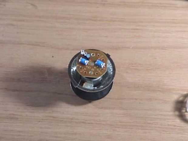 Utilice pegamento caliente para centro de la placa de circuito con LEDs hacia arriba en la parte superior del engranaje del motor.