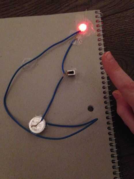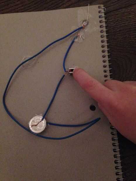 Cinta en la batería y conecte un cable del LED de la pila con el extremo del alambre debajo de la batería.