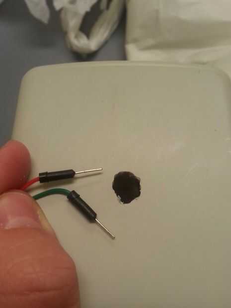 Usé un taladro hacer un agujero en la parte superior de la carcasa de mi altavoz para enviar los cables a través a la Arduino UNO. Nadie verá esto, así que no hay que mirar muy bien. Tenga cuidado con el plástico, avance lentamente sobre la perforación. Limpiar la broca de vez en cuando con un cepillo para bajar el exceso de plástico, o bien se funde a él.