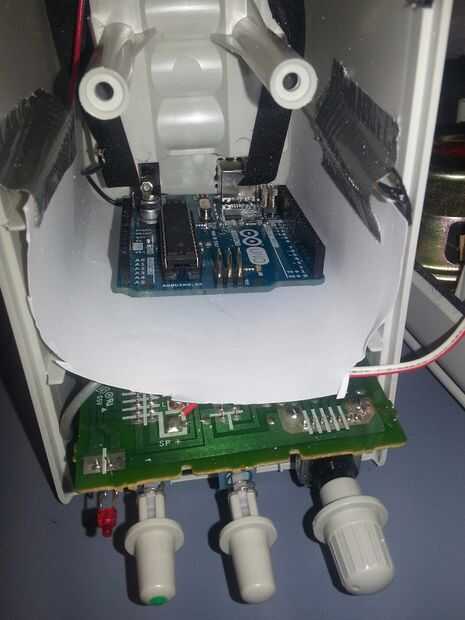 Para colocar mi Arduino UNO en el altavoz me encontré con un lugar plano que funciona mejor para este altavoz particular. Usé cinta y tarjeta de nota para separarlo del chip del orador. Luego puse otro trozo de tarjeta de nota en la parte delantera de la Arduino UNO para mantenerlo en su lugar. Un enfoque similar debería ser aplicable a todos los oradores, pero tienes que encontrar lo que realmente funciona mejor para usted.