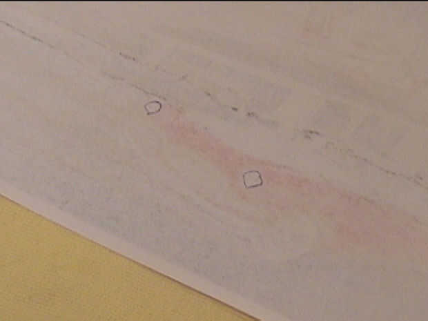 2. identificar donde los faros de un coche sería sobre la cara impresa y marque el punto con un lápiz. (Fig. 2)