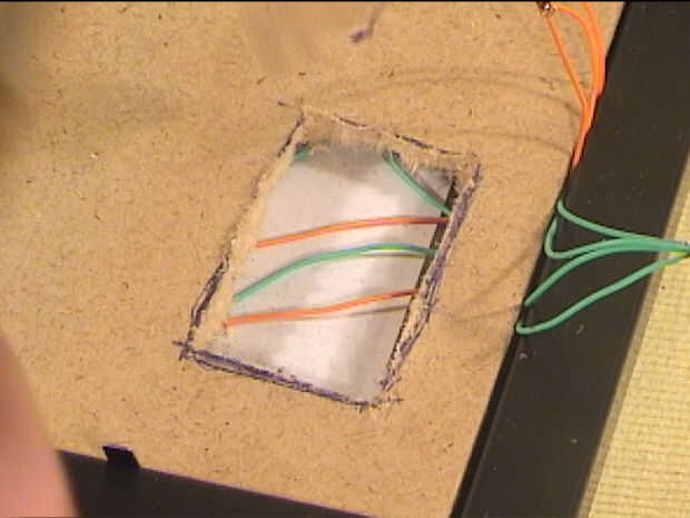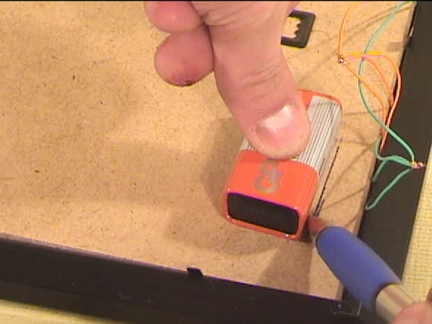 2. utilizando un lápiz se describe la pila de 9v en la portada y cortan el espacio para colocar la batería! (Foto 1,2)