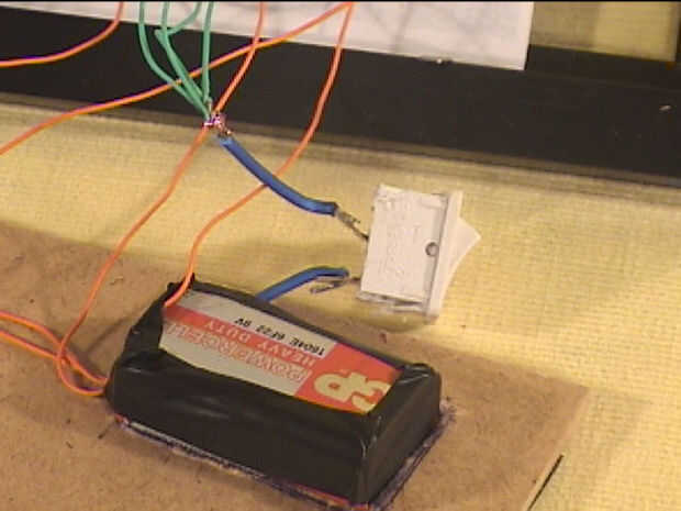 3. con cinta aislante hice el cable a los contactos de la batería y agregó un poco que tuve de una vieja lámpara de escritorio (Fig. 3) interruptor on/off