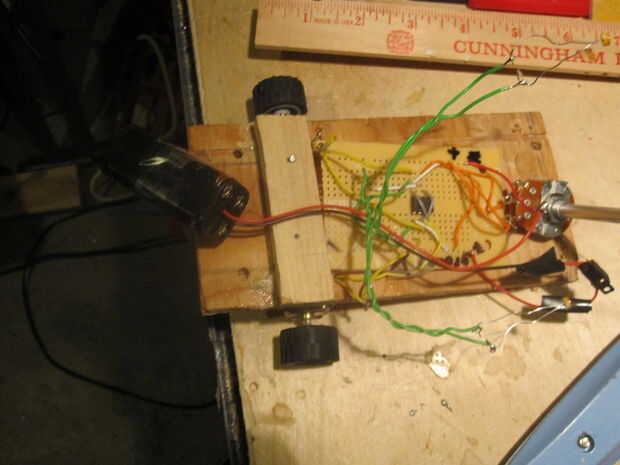 Construir un robot de 1/20 pulgada cúbica con una pinza que puede recoger y mover pequeños objetos. Es controlado por un microcontrolador Picaxe. En este momento, creo que esto puede ser más pequeño robot con ruedas del mundo con una pinza. Cambiará
