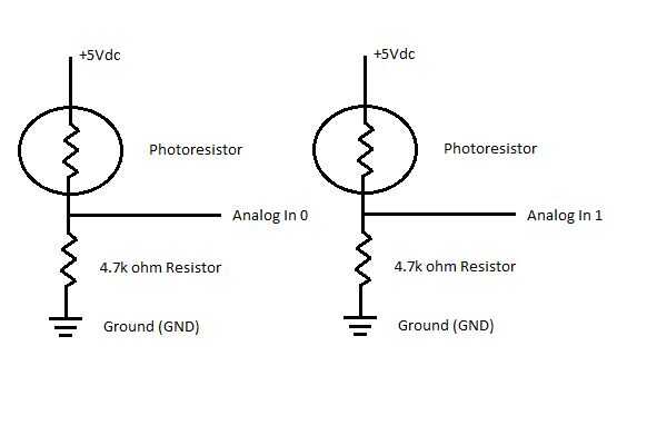 5. atar un cable de cada fotorresistencia a los + 5v bus.