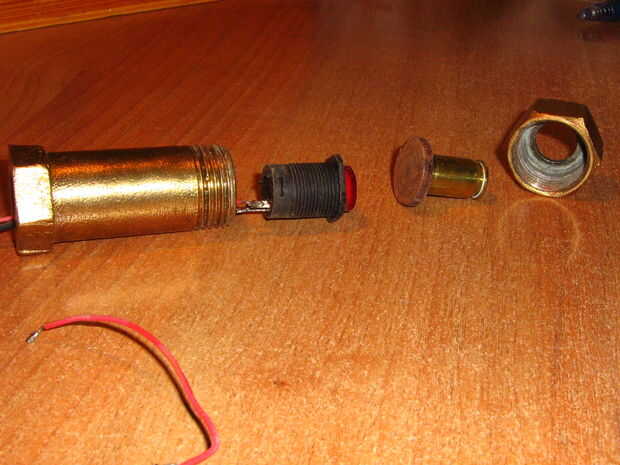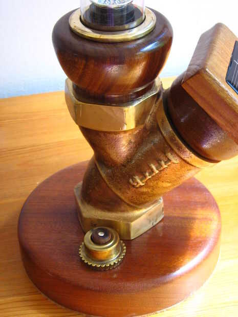 Tomó las medidas de la parte inferior del interruptor e hizo un agujero en la base de madera dejando espacio para el grifo que se volvió un poco... .