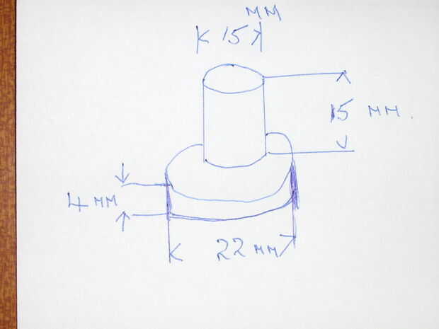 Hice una varilla de madera dura 22 mm de espesor y 50 mm de largo, ponerlo en el plato y cortar la primera parte hasta 15 mm de espesor