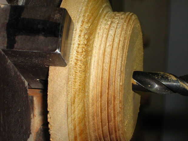 Al día siguiente se unió a mi placa de metal y husillo a los bloques de madera y fue a mi torno. Todo que esto es sólo para información...