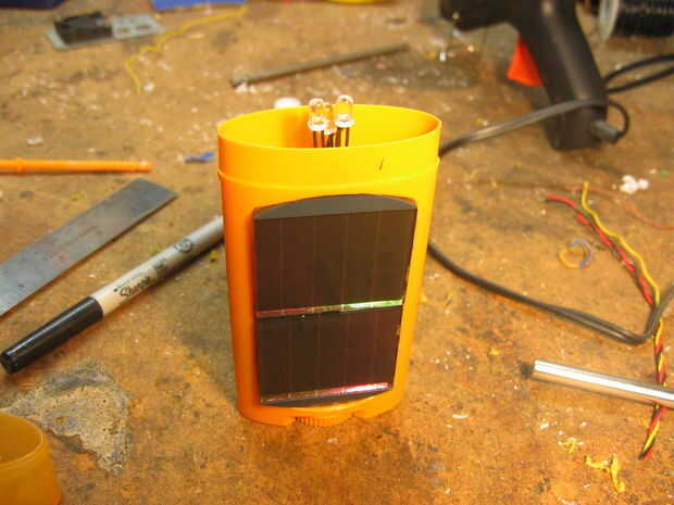 Usé pegamento de silicona para fijar y sellar la célula solar. Con un buen sellado, la luz debe trabajar en condiciones húmedas sumersión completa.