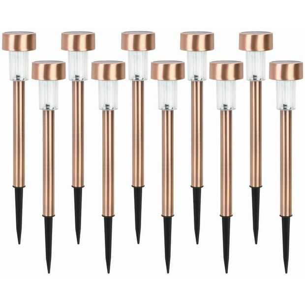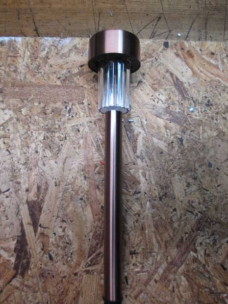 Eligieron estas luces debido a su acabado de cobre y cabeza muy pequeña luz solar en comparación con otras luces de spike. Solo LED es alimentado por una pila AAA.