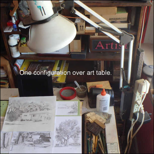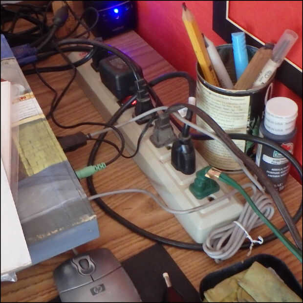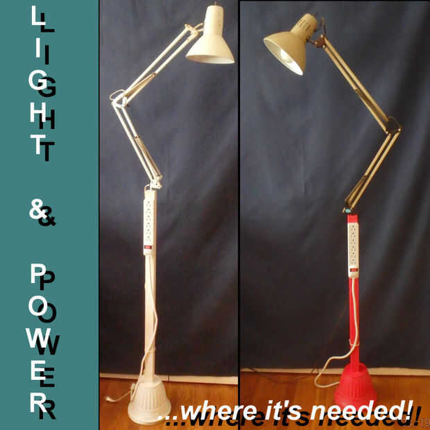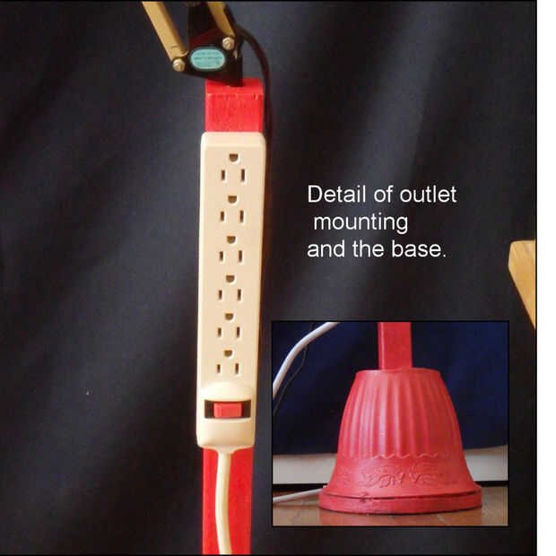 Me ocurrió con esta solución para un problema común: nuestra casa no tiene suficientes puntos de venta en cualquiera de las habitaciones por lo que siempre estábamos usando extensiones, enchufes múltiples, cajas eléctricas, etc.. Además, la mesa de arte, estaciones de trabajo de la manía/del arte necesita siempre luces. Así que decidí resolver ambos problemas con un portátil, sólido y fácil de usar luz/multi-outlet stand. Básicamente, es un madera vertical fijado a una base redonda de madera contraplacada. Un pote de flor plástico tiene la parte inferior cortado, al revés, conectado a la base y se agrega concreto para asegurar su estabilidad. Vamos a proceder.