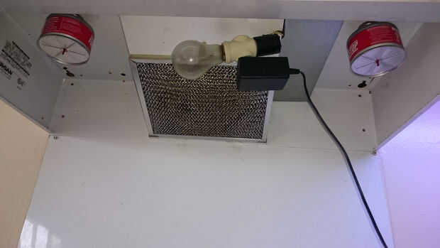 Mi luz se instaló al lado de mi campana así que decidí tomar el poder de la toma de luz hay. Es bastante fácil adquirir un adaptador de enchufe ligero que proporciona un receptáculo eléctrico. Si utiliza un recipiente de cocina no hay que comprar el adaptador del zócalo ligero.