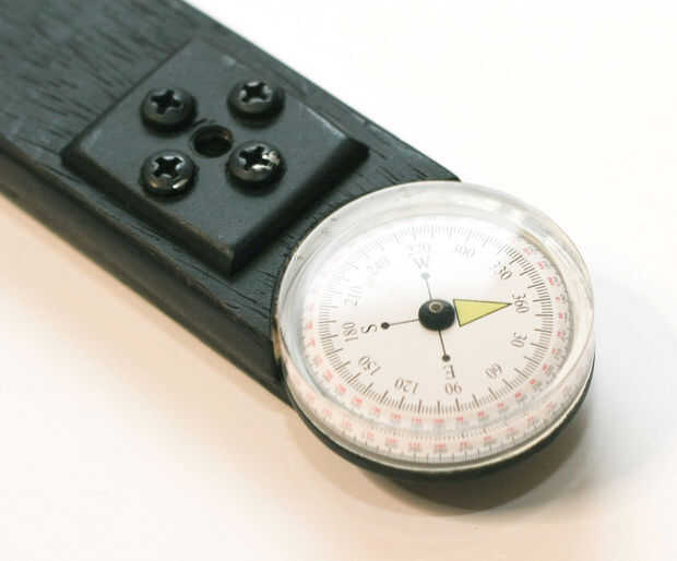Una nota rápida sobre la brújula. Aparte del hecho de que es muy cool ;-) le da un ángulo aproximado entre una toma y otra. Tenga en cuenta que brújulas están influenciadas por la proximidad de hierro, esta es la razón porque cerca de la placa está hecha de aluminio.