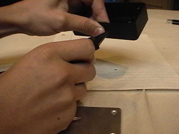 Marca donde los agujeros serán necesario, encima de la caja, teniendo la placa hacia la cubierta. Agujeros de taladro o resma para que la placa se adapta al ras a la caja. Tornillo del placa en el lugar con el hilo de rosca del tornillo está en la parte de afuera de la caja.