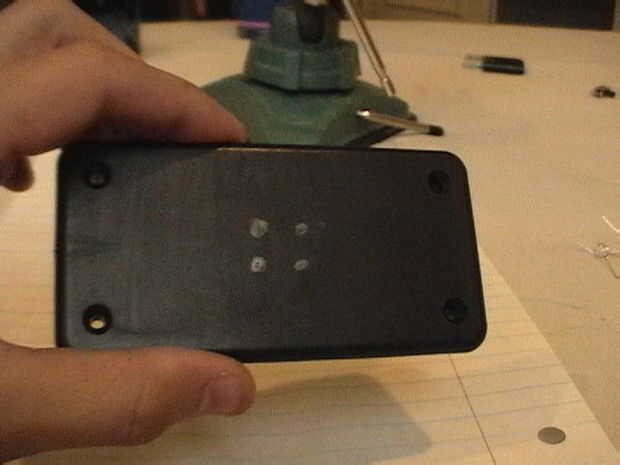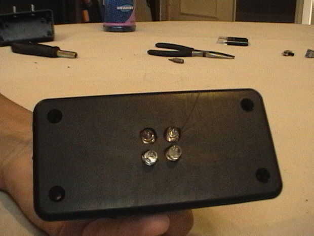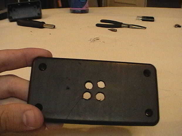 Tomar los cuatro leds y hacer que en cualquier forma, hice mía en un cuadrado. marcar y taladrar los agujeros. también corte los orificios donde se ejecutarán los cables para las luces de giro. Cortar el cañón de pluma Bic por la mitad, tesis montados en los lados y se utiliza para mantener las luces de giro. También cortar un agujero suficientemente grande para el interruptor.