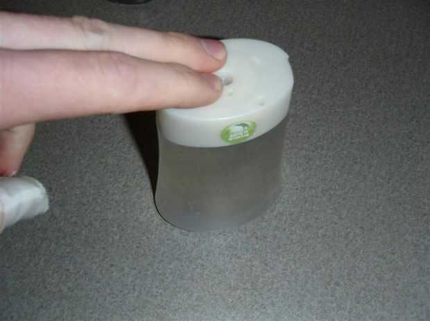 Cuando el depósito está lleno, colocar la tapa en. Primer lugar sobre la apertura y empuje firmemente hacia abajo. Tomará un poco de fuerza para asegurarse de que esté en lugar.