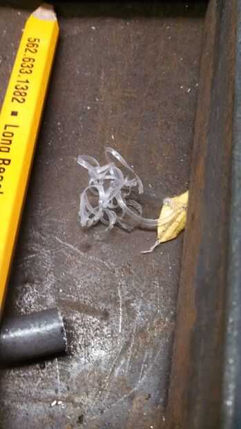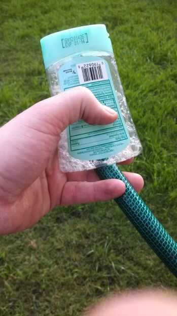 3. con la botella boca abajo, utilice una manguera que descarga los desechos de plástico restantes