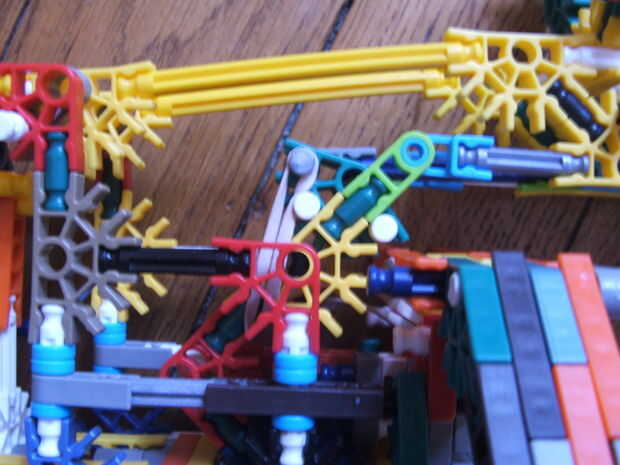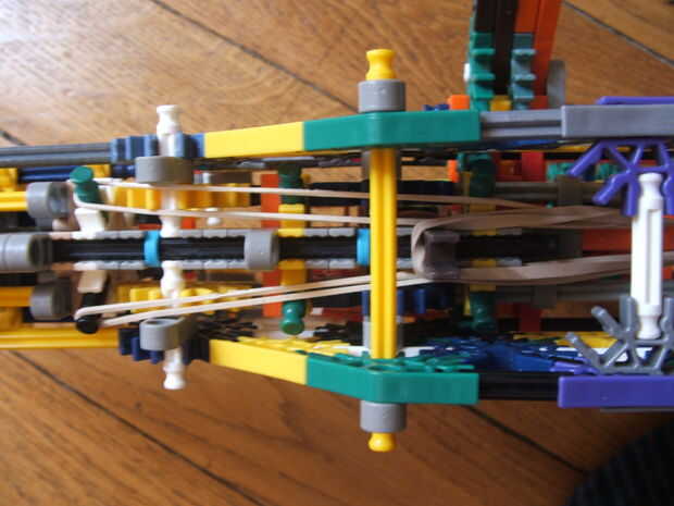 Para elásticos largo, fije el centro para el extremo de la barra de memoria ram y los otros extremos a una de las barras verdes en la parte inferior.