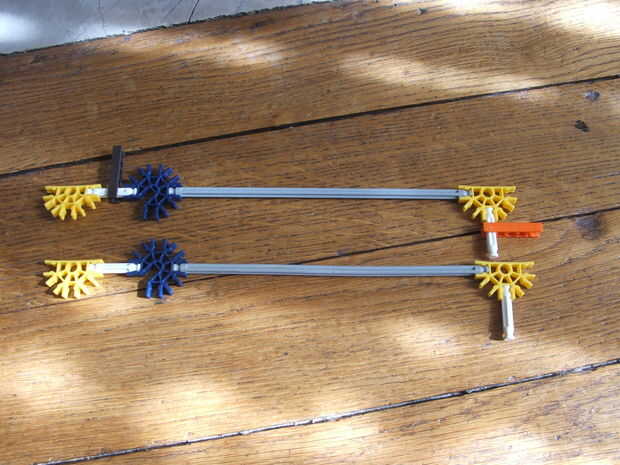 este rifle puede disparar quince pies con una banda elástica.Aquí están todas las partesBarras:5 rojo5 blancoAmarillo 319 verdeConectores:4 blanco10 gris oscuroNaranja 319 rojoAmarillo 22Paso 1: Cañón Estos son las dos partes para el cañónPaso 2: Mec