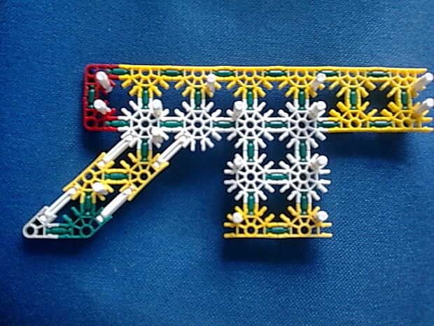 esta es un arma de KVG que usted puede hacer si no tienes muchas piezasPaso 1: Reunir las piezas para hacer el arma que vas a necesitarmango2 conectores verdes2 barras verdesbarra azul 14 conectores de púrpuraCañón3 barras rojas2 barras amarillas2 ba