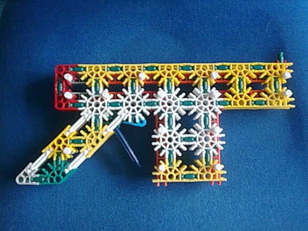 esta es un arma de KVG que usted puede hacer si no tienes muchas piezasPaso 1: Reunir las piezas para hacer el arma que vas a necesitarmango2 conectores verdes2 barras verdesbarra azul 14 conectores de púrpuraCañón3 barras rojas2 barras amarillas2 ba