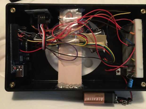 10. Una vez que estés feliz con el código, re posición arduino en su lado en la caja, asegúrese de que uno de los agujeros en el disco de giro esté alineado con el orificio del disco estacionario y enroscar la parte superior.