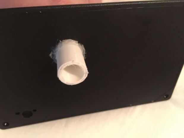 5. Conecte el tubo de suministro a la tapa, a través del orificio que se perforó para él. Este tubo debe apenas tocar el disco hace girar en el recinto, por lo que la manera más fácil de colocar esta pieza es sostener sobre ese disco con la tapa y luego péguelo en la posición que se encuentra trabajando.