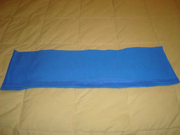 Doblar el pedazo corto por la mitad con los lados del derecho juntos.