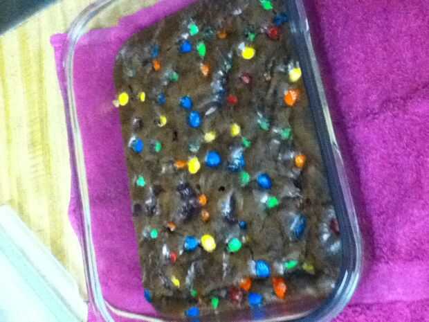 Siempre he querido hacer brownies pero después de quemar dos bandejas de galletas dio para un rato. Hice esto por mi cuenta y al principio solo quería hacer brownies pero tuve una bolsa de M & Ms izquierda sobre así que lo usé y fue delicioso!