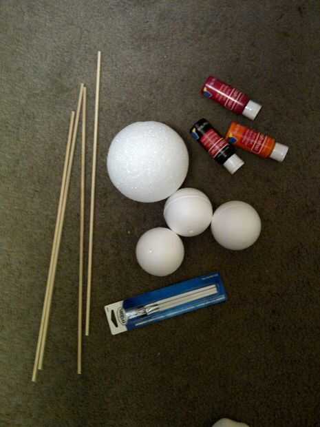 esta es una divertida manera de aprender sobre el sistema solar Lista de materiales: • Al menos 4 bolas de espuma de poliestireno • Varillas de madera para cada bola de espuma de poliestireno en el centro • La pintura • Pincel • Cualquier otro artículo personal