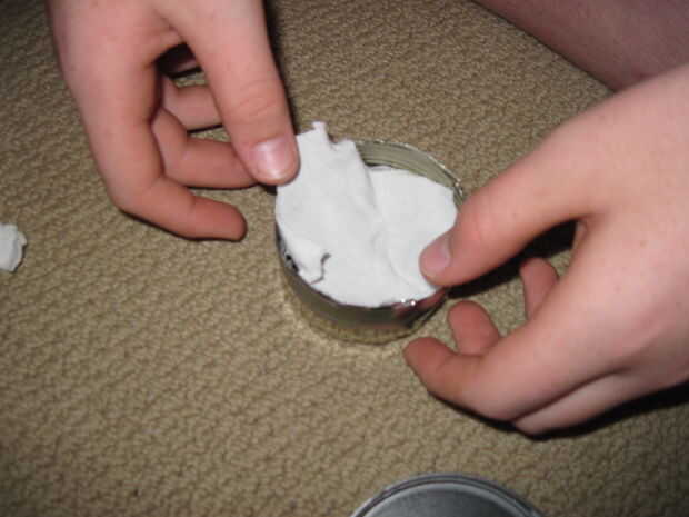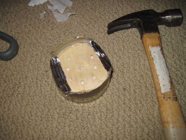 Una vez en la tapa, martillo de los lados de la lata hacia abajo sobre la tapa para asegurarse de que nunca baja de.