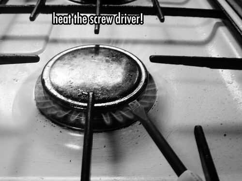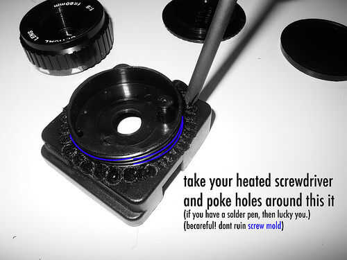 Utilice el destornillador caliente y haga agujeros alrededor del molde de tornillo.