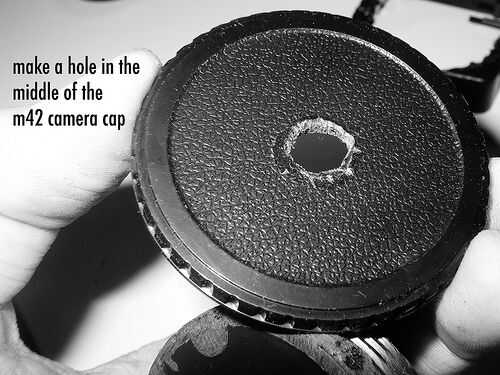 Paso 5: Hacer un hoyo en el centro de la tapa de cámara de M42