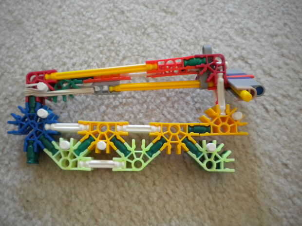 Este es el segundo de una serie de 3 ascensores nuevos en nuestra máquina de la bola de k'nex imposible.Esta elevación es bastante pequeña, lo que es útil para espacios pequeños donde tienes que hacer que la bola suba un poco. Ahora, sé que puedes es