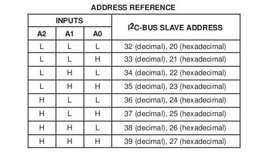 Esto tiene una dirección fija (preprogramada) de 0X27(hex), o 39 en decimal.