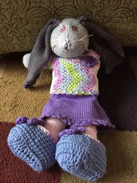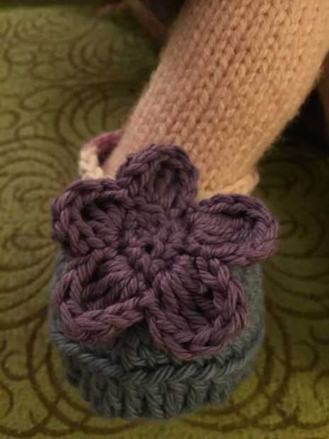 Mabel tiene tipo de pies grandes por lo que tomé un botín de bebé genérico un ajustado que le. Utilicé el hilo Stonewash y tamaño E y G ganchos. El más grande es para el único y el más pequeño para apretar la parte del zapato. Los botines no eran duros, tuve que seguir midiendo cuando fui. Jugar con el suyo según cómo resultan las patas de conejo. Mina eran 3 1/2 pulgadas de largo.