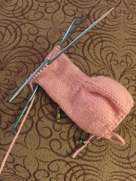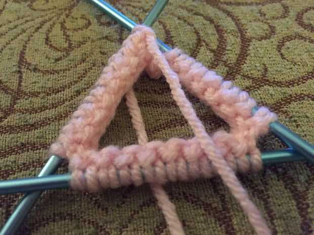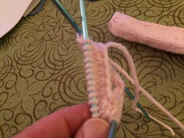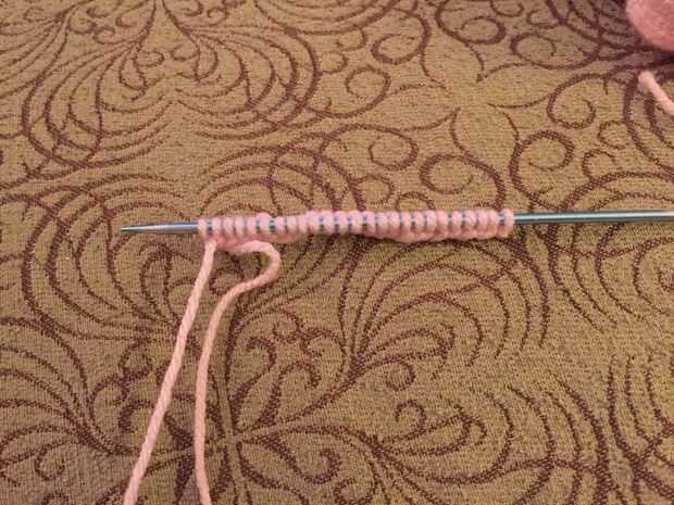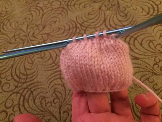• K9 puntadas luego K2 puntadas juntos 7 veces en una fila, entonces K9